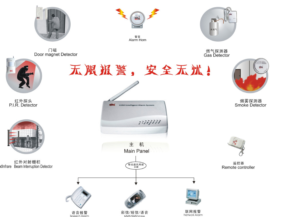 JD-X303智能型无线防盗报警主机。配合各种无线探测器,可实现智能化防盗、防火、防燃气漏露、紧急求救等功能。当有人非法进入设防区域时,系统将鸣响警笛报警,并自动循环拨打事先设置好的1-6组电话报警,可通过接警电话远程主动监0听防区的现场动静。当电源线路被破坏或由于其它原因断电时,系统备用电源仍能继续工作24小时以上。