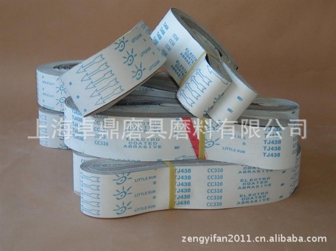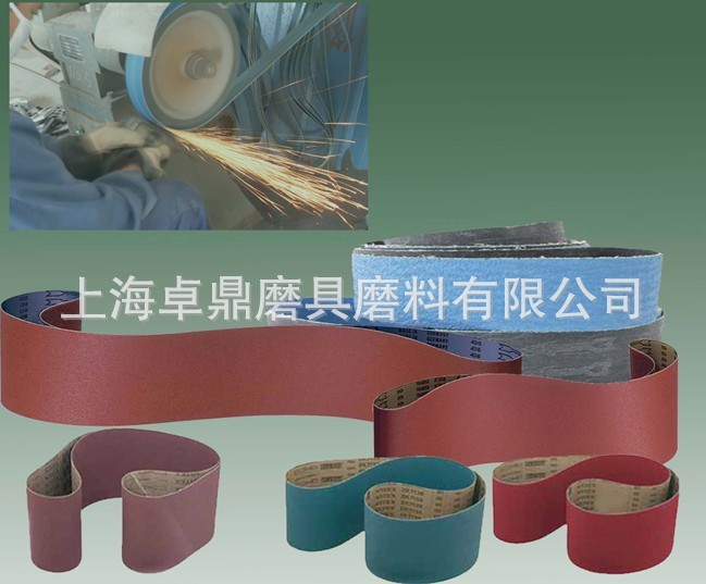 砂带是特殊形态的多刀、多刃的切削工具,其切削功能主要由粘附在基底上的磨粒来完成。作为一颗磨粒的切削行为,可以比喻为一般切削加工刀具的微型体的切削行为。砂带属一种单层磨料的磨具,是砂带磨削的主体,它由磨料、粘结剂、基体材料三要素组成,在具有可挠性且极为平坦的布料或纸料基体表面上,平整地排列着长径立起的磨粒,靠粘结剂和基体材料保持可挠性和弹性。作为涂附磨具的主要品种,其性能是由各部分要素综合形成的,由于这些要素的组成各异,使得砂带这种涂附磨具的性能可满足不同的工件材料在不同的加工条件下进行磨削加工的要求,同时也形成了砂带磨削区别于砂轮磨削的诸多优点。
