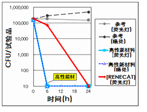 改善了当前的可视光应答型光触媒「RENECAT?」,开发出了更高性能的「RENECAT?三倍性能材料」.「RENECAT?高性能材料」比之前的材料气体分解能力和xx性能提高了。 |