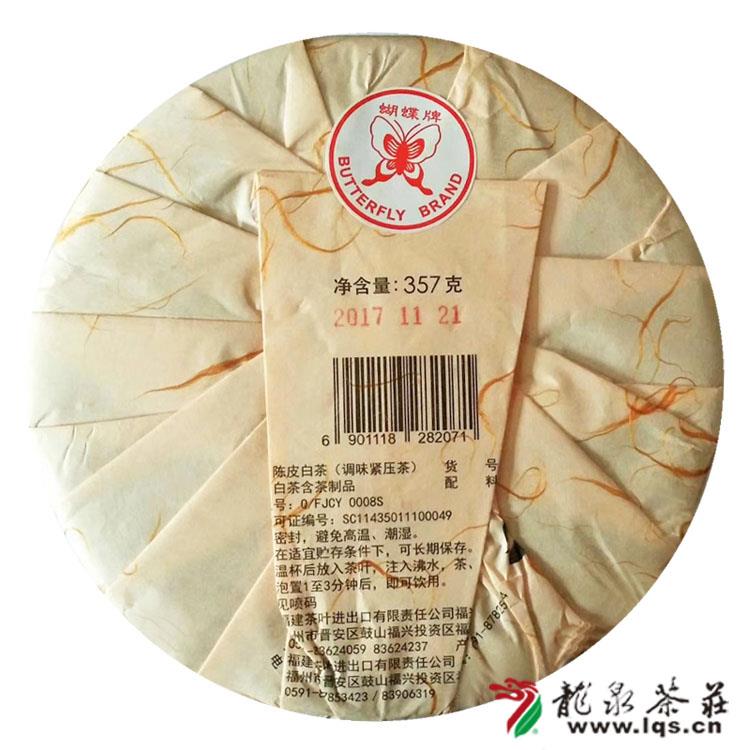中茶蝴蝶牌2017年陈皮白茶357克甄选天马陈皮